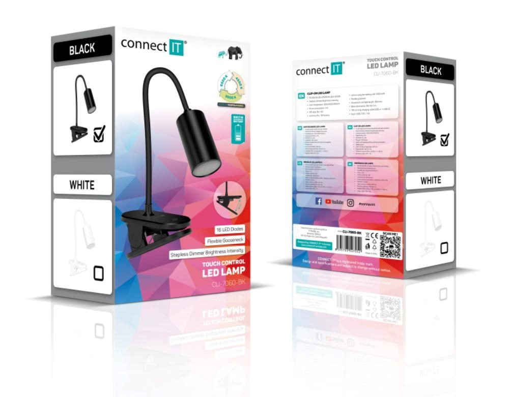 CONNECT IT Stolní LED lampa CLIP 2 s klipem, černá