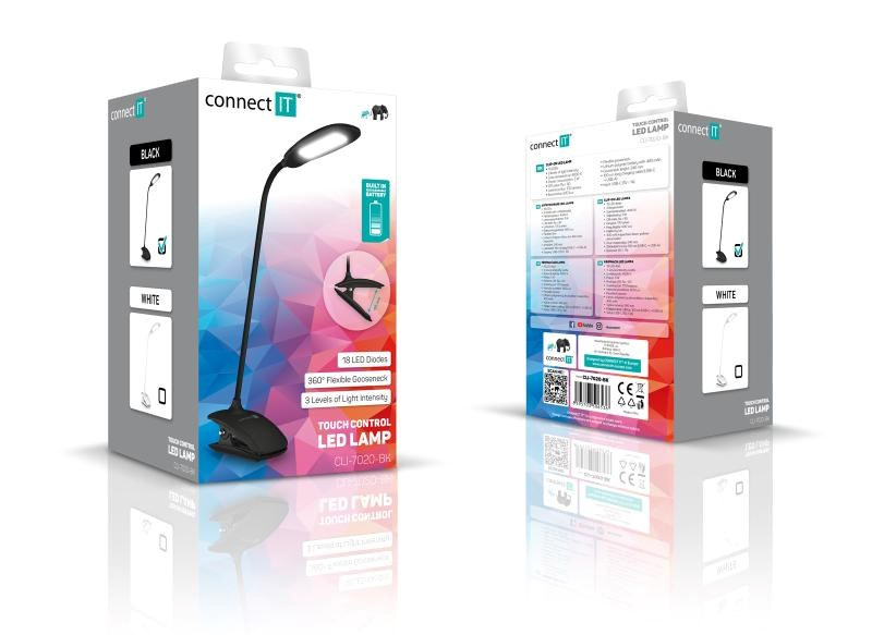 .CONNECT IT Stolní LED lampa CLIP s klipem, černá
