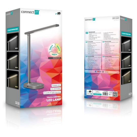 .CONNECT IT Stolní LED lampa Shine, USB-A, šedá