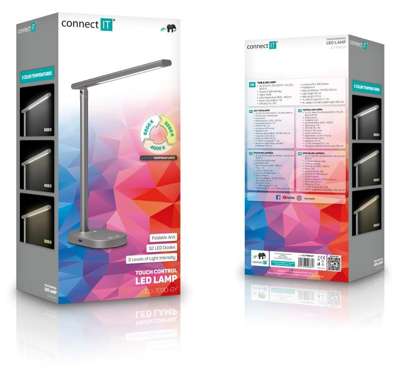 .CONNECT IT Stolní LED lampa Shine, USB-A, šedá