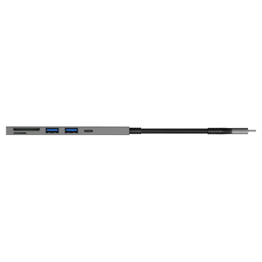 Prakticky tvarovaný USB-C hub pre pripojenie až 3 USB periférií (1 x USB-C a 2 x USB-A), 1x SD karty a 1x MicroSD karty. Umožní pripojenie napr. myši, klávesnice, MP3 prehrávača, skenera, tlačiarne, digitálneho fotoaparátu, externého pevného disku, flashdisku atď.