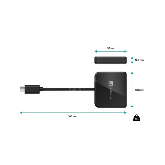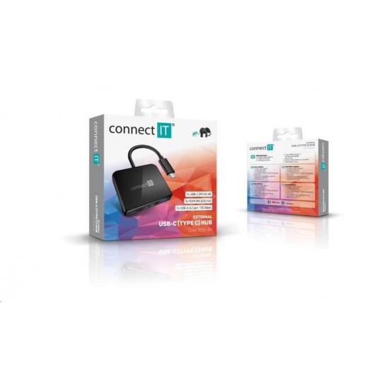 CONNECT IT CHU-7050-BK USB-C hub 3v1 (USB-C, USB-A, HDMI), čierny
