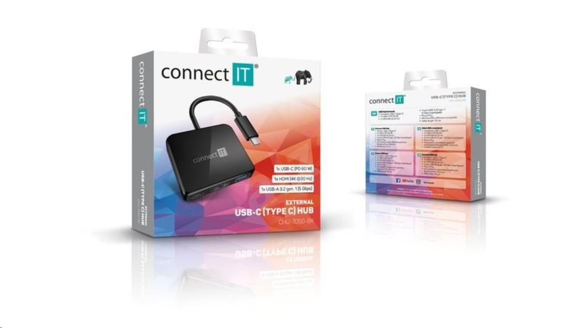 CONNECT IT CHU-7050-BK USB-C hub 3v1 (USB-C, USB-A, HDMI), čierny