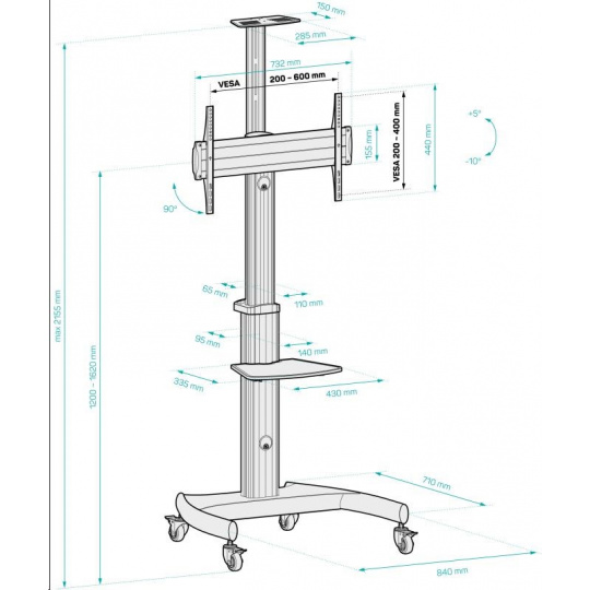 CONNECT IT Wheelie II mobilný stojan a držiak na jednu obrazovku 37" - 70", 30 rokov záruka, strieborná