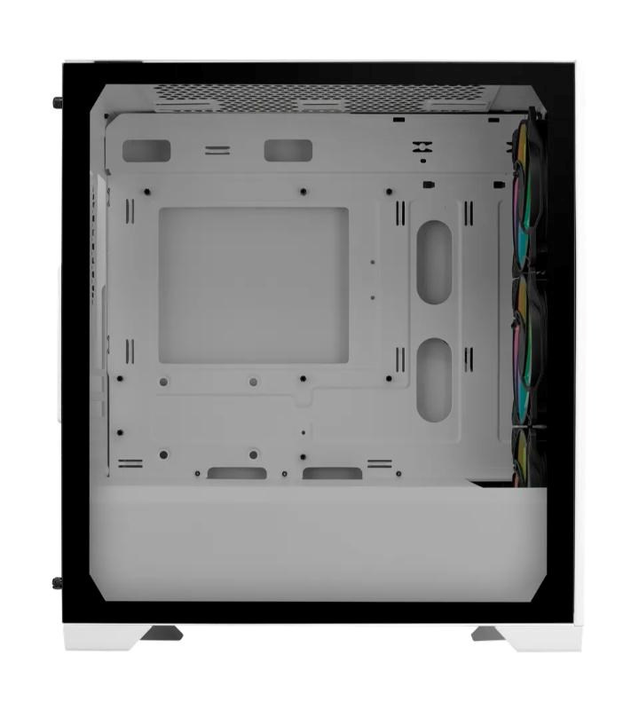 Elite 301 je vybavený veľkou sacou mriežkou a 3x 120mm ventilátormi ARGB, ktoré zabezpečujú plynulý a efektívny chod systému. Plne čierny povrch a priložený kryt PSU umožňujú čistú zostavu, ktorá je vizuálne atraktívna aj funkčná.