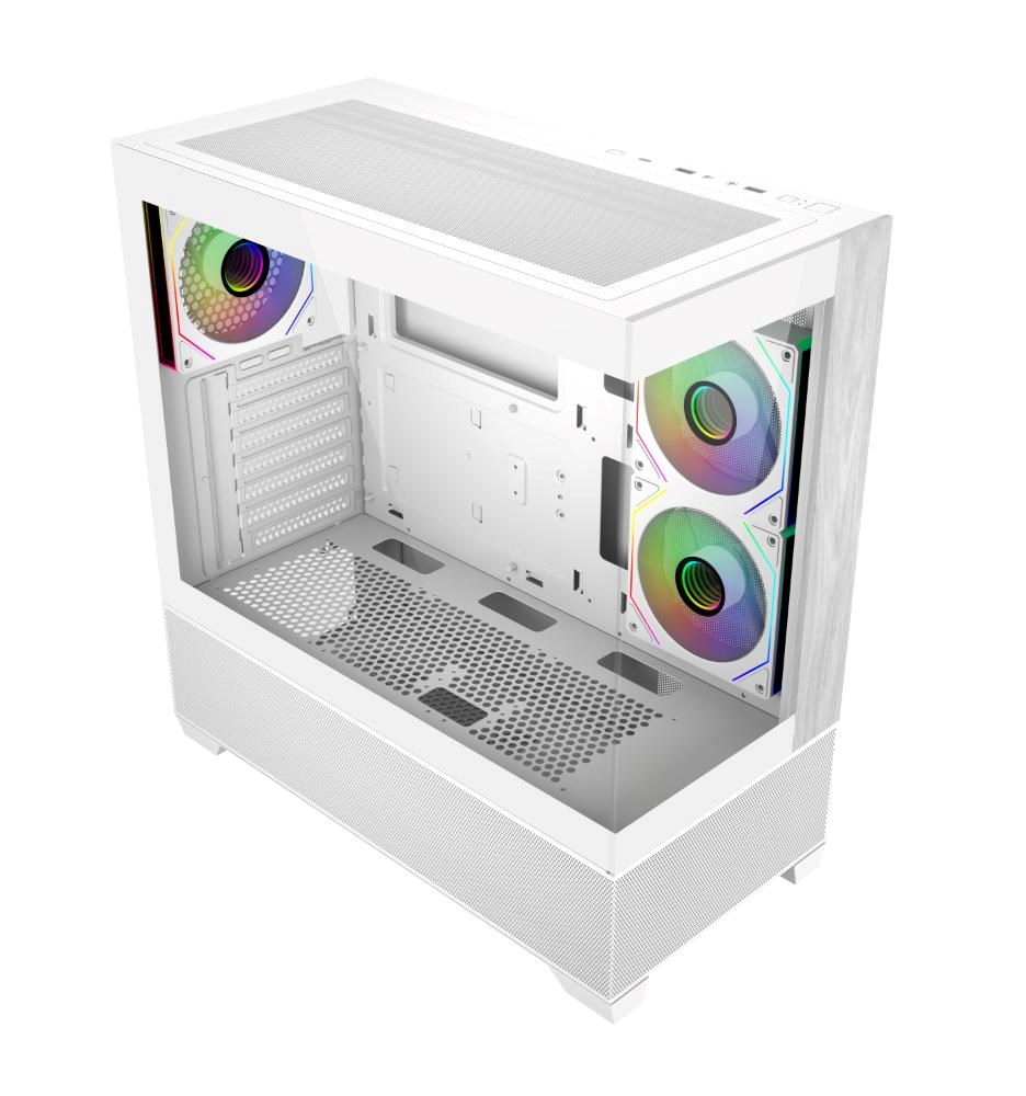 .Cooler Master case Elite 690 Wood, ATX, Průhledná bočnice, 3x 120mm ARGB Fan, Bílá