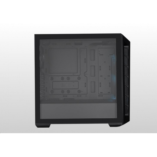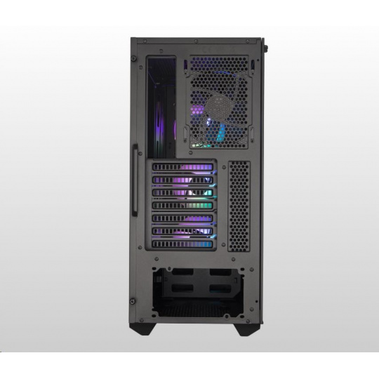 MasterBox MB520 ARGB je optimálna herná počítačová skrinka formátu ATX, v ktorej sa môžete pochváliť osvetlením komponentov a zároveň udržať systémy chladné. Predný panel DarkMirror je o odtieň tmavší, aby dodal predinštalovaným ventilátorom ARGB ostrejší kontrast. Na každej strane predného panelu sa rozprestiera ventilačná sieťka, ktorá zabezpečuje značný prúd vzduchu vo vnútri skrine.