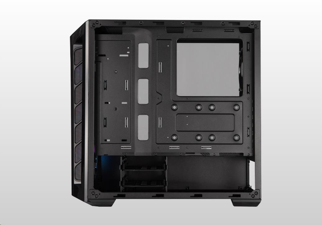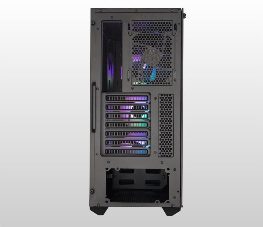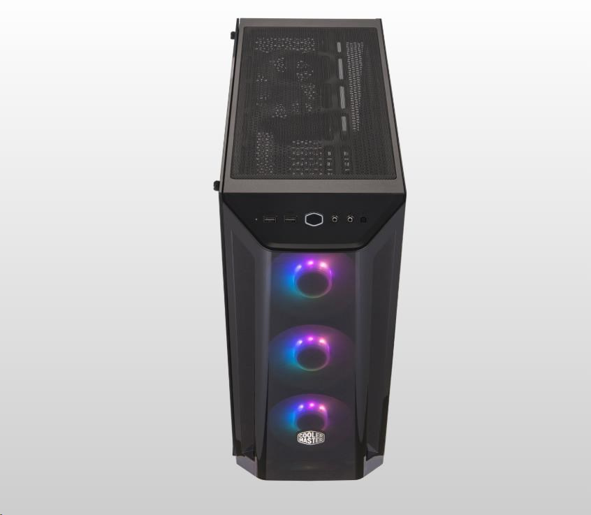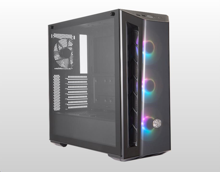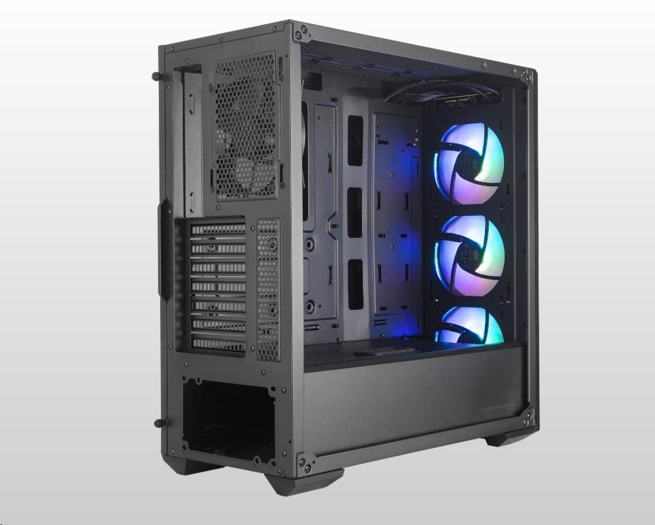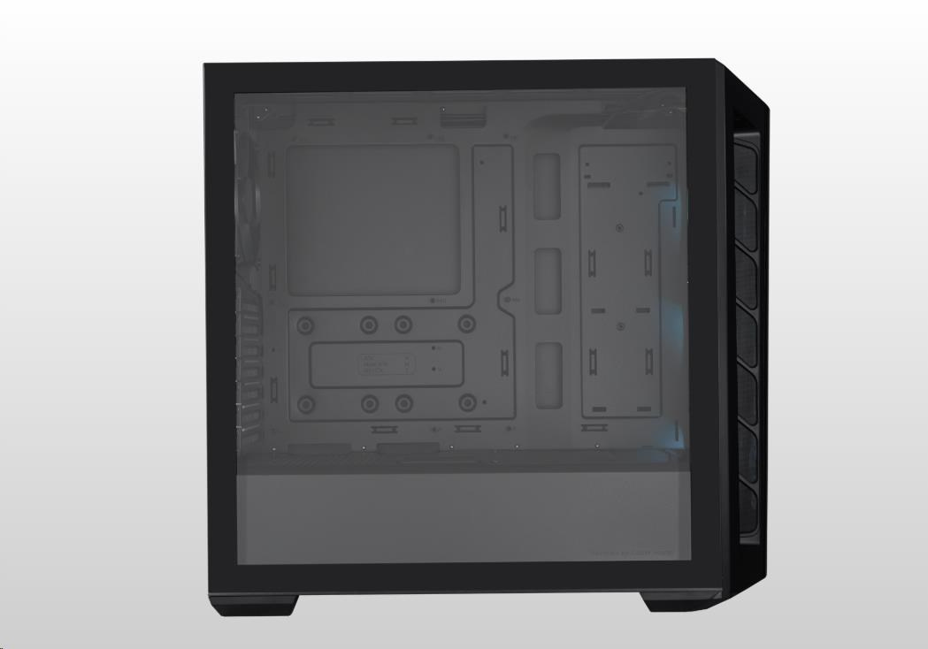 MasterBox MB520 ARGB je optimálna herná počítačová skrinka formátu ATX, v ktorej sa môžete pochváliť osvetlením komponentov a zároveň udržať systémy chladné. Predný panel DarkMirror je o odtieň tmavší, aby dodal predinštalovaným ventilátorom ARGB ostrejší kontrast. Na každej strane predného panelu sa rozprestiera ventilačná sieťka, ktorá zabezpečuje značný prúd vzduchu vo vnútri skrine.