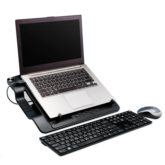 ERGOSTAND III je ergonomický chladiaci stojan na notebook, vďaka ktorému bude používanie notebooku zábavné a zvýši sa vaša produktivita pri práci. Veľký 230 mm ultra tichý ventilátor s úplne novým Loop Dynamic Bearing a exkluzívnym dizajnom lopatiek ventilátora poskytuje lepší rozptyl vzduchu, veľmi nízku hlučnosť a dlhšiu životnosť, čím zvyšuje výkon notebooku. Odnímateľná predná doska umožňuje rýchle čistenie na udržanie vysokého výkonu. 6 ergonomických nastavení výšky vám umožní rýchlo si vybrať ideálny uhol na zmiernenie bolesti krku a ramien. Drážky a háčiky udržujú káble čisté a upratané, zatiaľ čo rozbočovač USB rozširuje jeden port notebooku na štyri (4). Kompatibilný so 17" notebookmi a tabletmi vďaka nastaviteľným protišmykovým držiakom.