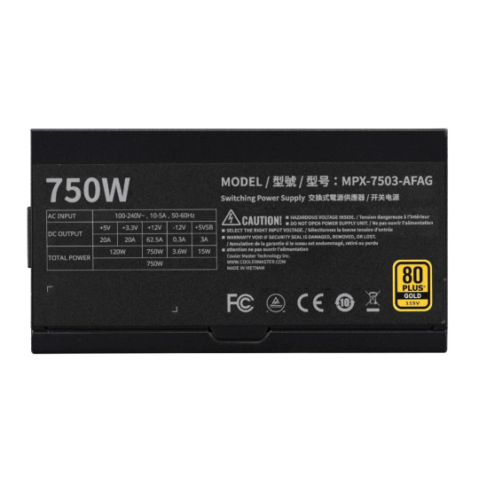 .Cooler Master zdroj 750W MWE Gold 3, 120mm, 80+ Gold, Plně modulární, ATX 3.1