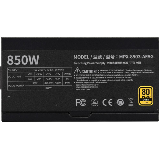 .Cooler Master zdroj 850W MWE Gold 3, 120mm, 80+ Gold, Plně modulární, ATX 3.1