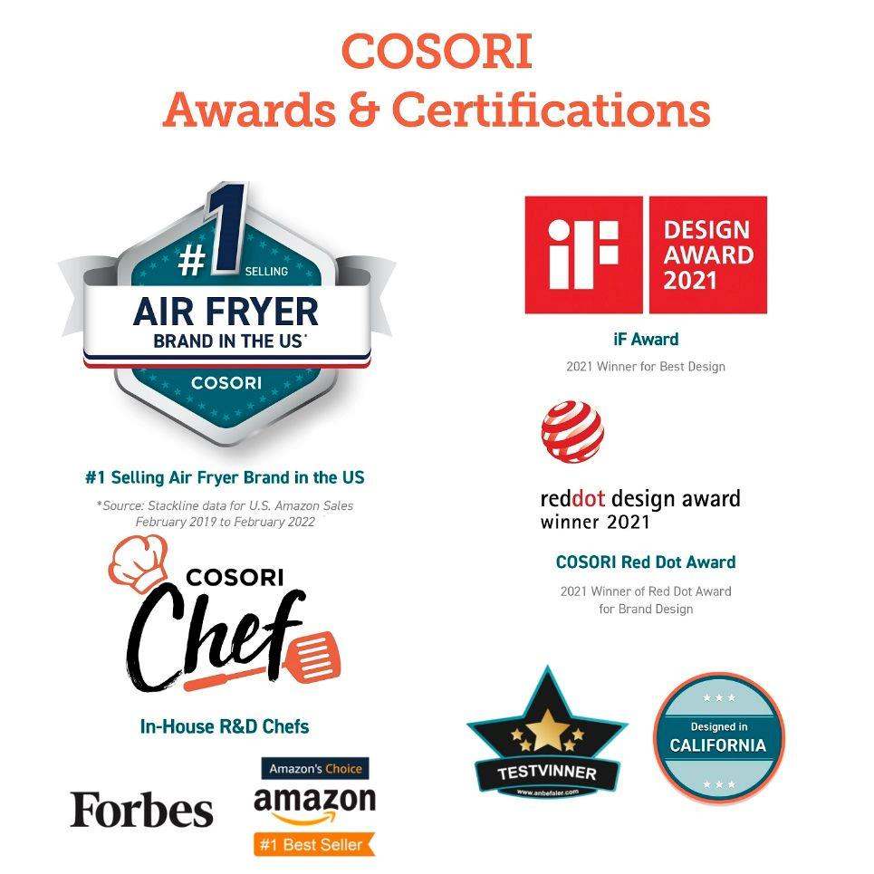 Cosori je najpredávanejšou značkou teplovzdušných fritéz v USA, je držiteľom viacerých prestížnych ocenení a môžete jej dôverovať aj vy.