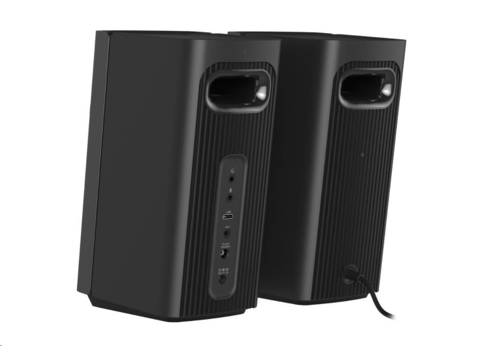 Bezdrôtové rozhranie Bluetooth® 5.0 Slúchadlá/náhlavná súprava Mikrofón 3,5 mm vstup AUX-in Už vás nebaví neustále pripájať a odpájať náhlavnú súpravu z reproduktorov stolného počítača a striedať prehrávanie zvuku z reproduktorov a náhlavnej súpravy? So zariadením Creative T60 už nikdy nič podobné nezažijete! Pomocou tlačidla pohodlne umiestneného na prednej strane reproduktora môžete okamžite prepínať medzi prehrávaním zvuku zo zariadenia Creative T60 alebo zo slúchadiel. A to nie je všetko! Na pravom reproduktore nájdete gombík na nastavenie hlasitosti, tlačidlá Clear Dialog a Surround na aktiváciu zvukových technológií stlačením tlačidla a tlačidlo napájania na zapnutie reproduktora alebo prepínanie medzi zdrojmi zvuku. Reproduktorový systém Creative T60 je dokonalý stolný reproduktor 2.0 do vašej izby. Čistý a elegantný vzhľad, ktorý ladí s monitorom a zaberá väčšinu drahocenného priestoru na stole. V kombinácii so všetkými akustickými funkciami a možnosťami pripojenia umožňuje tento reproduktorový systém Creative T60 jednoducho a bezproblémovo vylepšiť predvolený zvuk vášho stolného počítača alebo notebooku. Rozmery Dĺžka kábla Hmotnosť Prevádzková teplota Výstupný výkon Meniče Frekvenčný rozsah Konfigurácia systému Odstup signálu od šumu Pracovná frekvencia Bluetooth Prevádzkový dosah zariadenia Bluetooth Verzia Bluetooth® Profil Bluetooth Podporované kodeky Typ konektora Farba Verzia