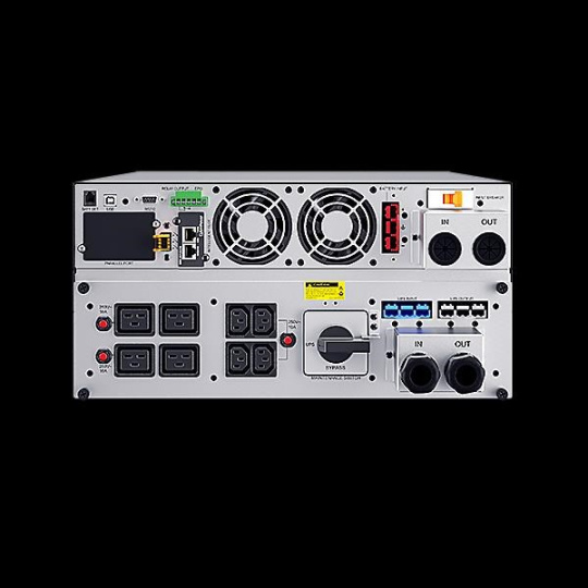 Vďaka vysokému výstupnému účiníku môže UPS s menším pôdorysom poskytnúť viac využiteľného výkonu a ušetriť miesto v racku. Produkt umožňuje paralelné pripojenie viacerých jednotiek UPS a dosiahnutie vyššej kapacity a redundancie napájania. Predinštalovaný Maintenance Bypass PDU (MBP) ponúka rýchlu a bezpečnú údržbu bez prerušenia napájania. Výklopný farebný LCD displej navyše prichádza s intuitívnym a grafickým rozhraním, ktoré používateľom umožňuje ľahko sledovať a konfigurovať nastavenia. Okrem toho je nabíjací prúd batérie nastaviteľný pomocou nastavenia LCD na skrátenie doby nabíjania. Je tiež navrhnutý s portom pre suchý kontakt relé pre podporu špecifických upozornení na udalosti UPS pre jednoduchú správu.