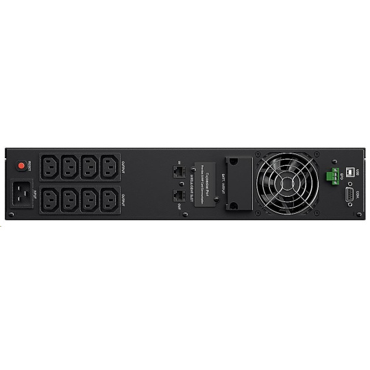 | Dodávka zahŕňa | UPS, Používateľská príručka, Rackmount koľajnice, Úchyty na montáž do stojana, Telefónny kábel, Kábel USB, Sériový kábel (RS232), M5X8L (8), M5X12L (12), Plastové podložky (8) Zaslepovacia doska (12), CD so softvérom PowerPanel® Business Edition. Gumové podložky pre UPS(12) |