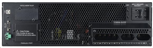| Obsah dodávky | UPS; kryt Vstup/Výstup Terminal bloku; používateľská príručka; telefónny kábel; PowerPanel®Business Edition softvérové CD; USB kábel typ A+B; lišty na uchytenie do racku; konzola na montáž do racku (2+2); spojovací plech (2); lišty (2+2); sériový kábel; napájací kábel; montážna sada |