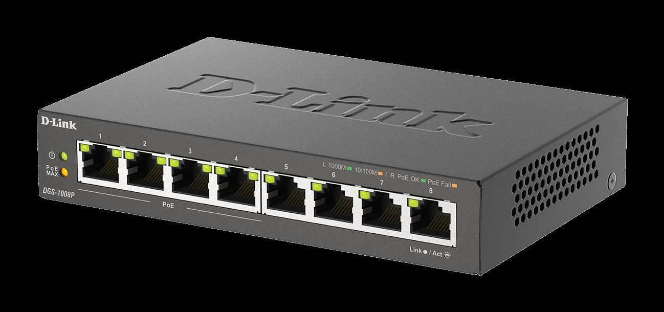D-Link DGS-1008P 8-portový gigabitový stolový prepínač, 4 porty PoE+, rozpočet PoE 68 W