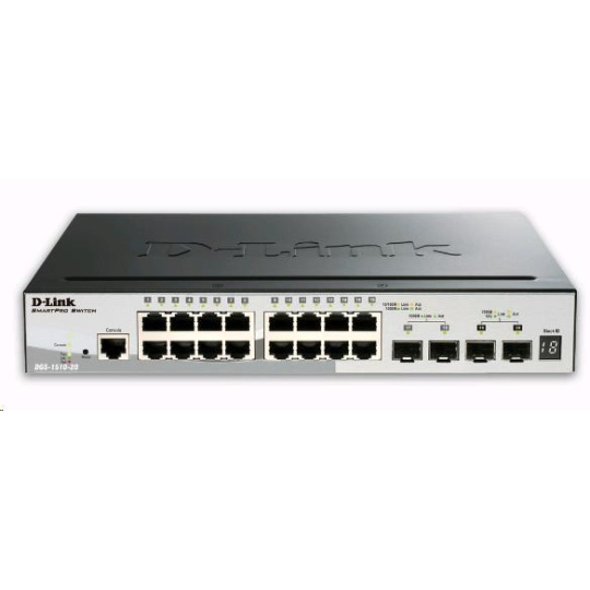 D-Link DGS-1510-20 20-portový gigabitový stohovateľný prepínač SmartPro, 16x gigabitový RJ45, 2x port 10G SFP+, 2x port SFP