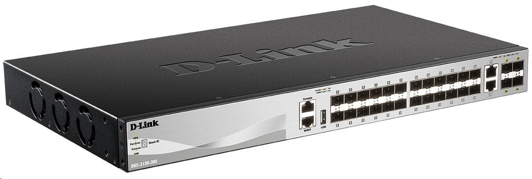 D-Link DGS-3130-30S/SI L3 Stohovateľný spravovaný gigabitový prepínač, 24x SFP, 2x 10GBASE-T, 4x SFP+