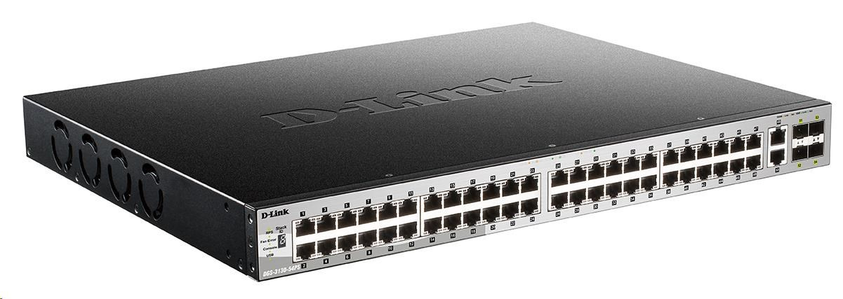 D-Link DGS-3130-54PS/SI L3 Stohovateľný riadený gigabitový PoE switch, 48x PoE gigabit, 2x 10GBASE-T, 4x SFP+, 370W PoE