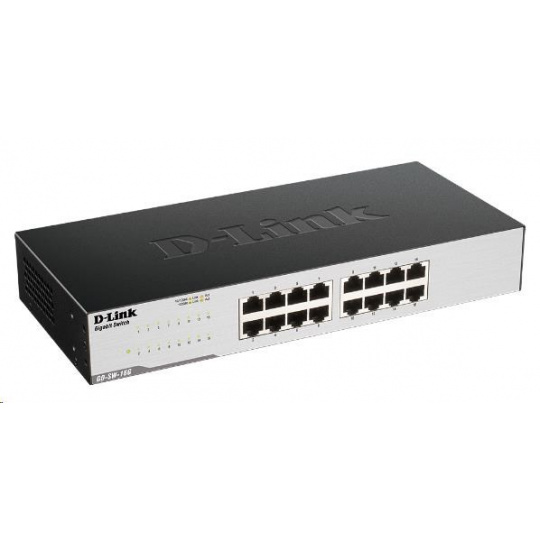 16-portový GIGABIT EASY DESKTOP SWITCH - 16-portový gigabitový prepínač - Auto MDI.MDIZ crossover pre všetky porty - Full/half-duplex pre rýchlosti Ethernet / Fast Ethernet - Plug-and-play inštalácia - Energy Star Level V kvalifikácia - D-Link Green (automatické vypnutie nepoužívaných portov) - Kovové puzdro, čierne, Desktop a Rackmount (gumové nožičky a Rackmount kit súčasťou balenia), 1 HE..