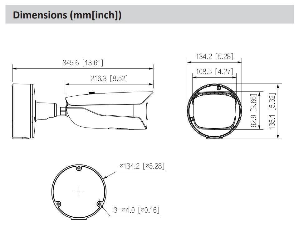 * Nižšie uvedené parametre a technické listy je možné použiť iba pre sériu 5842-Z-S3. 1/1,8" obrazový snímač CMOS s rozlíšením 8 MP, nízkou clonou a vysokým rozlíšením obrazu. Výstup max. 8 MP (3840 × 2160) pri 25/30 snímkach za sekundu. Vstavaná infračervená LED dióda a maximálna svetelná vzdialenosť je 60 m. ROI, SVC, SMART H.264+/H.265+, AI H.264/H.265, kódovanie po filtri, flexibilné kódovanie, použiteľné pre rôzne šírky pásma a úložné prostredia. Režim otáčania, WDR, 3D NR, HLC, BLC, digitálny vodoznak, použiteľný pre rôzne monitorovacie scény. S algoritmom hlbokého učenia podporuje: metadáta videa, inteligentnú detekciu zvuku, IVS, detekciu tváre, inteligentnú detekciu objektov a počítanie ľudí atď. Alarm: 3 vstupy, 2 výstupy; Zvuk: 1 vstup, 1 výstup; RS-485; analógový výstup; výstupný výkon; podporuje max. 512G Micro SD kartu, vstavaný duálny mikrofón MIC. Napájanie 24 VAC/12 VDC/PoE; ePoE. Krytie IP67, IK10. SMD 3.0..