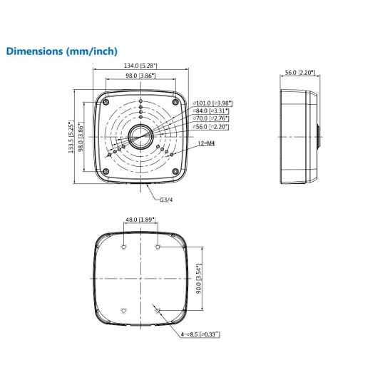 - Rozmery (Š x V x H): 134,0 mm x 133,5 mm x 56,0 mm