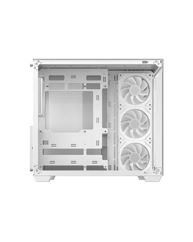Zažijte dokonalé ztvárnění vaší sestavy díky otevřenému designu bez středového sloupku. Skříň CG530 4F WH se vyznačuje elegantní bezešvou konstrukcí, bočním panelem z tvrzeného skla a skleněným čelním panelem, které společně poskytují křišťálově čistý pohled na všechny komponenty a proměňují počítač v opravdové umělecké dílo.