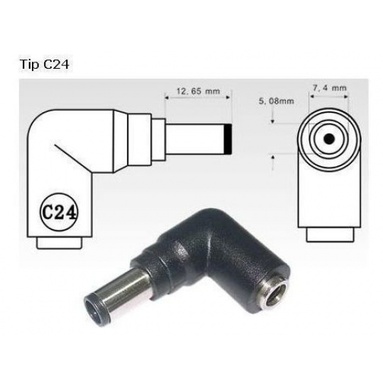 Konektor, ktorý možno použiť na redukciu konektora C.4 univerzálne sieťové adaptéry na konektor C24 (7,4 mm x 5,1 mm pin) vhodné pre notebooky HP/Compaq