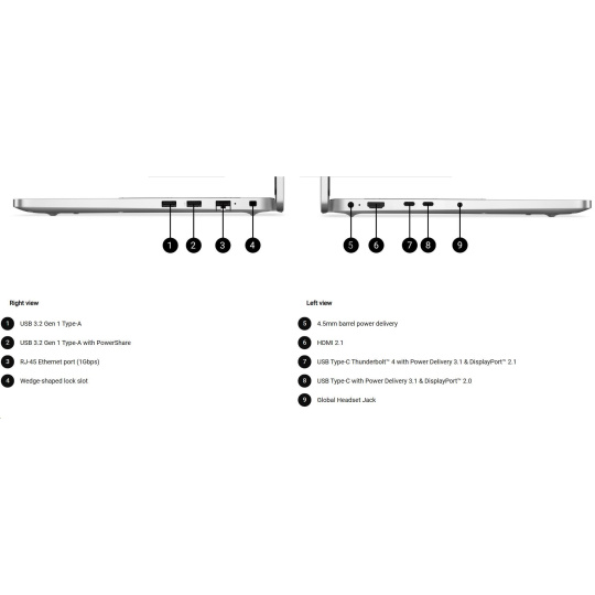 | 3-cell, 55 Wh, ExpressCharge™ Capable, ExpressCharge™ Boost Capable, 65W AC adapter, USB Type-C |