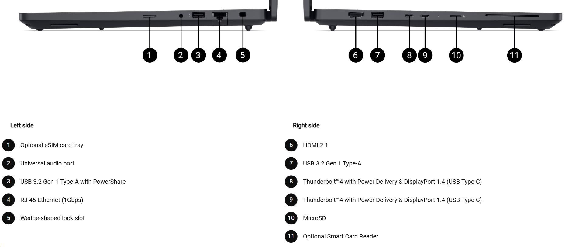 4 cell, 64Whr, standard battery, 100W AC adapter, USB Type C |