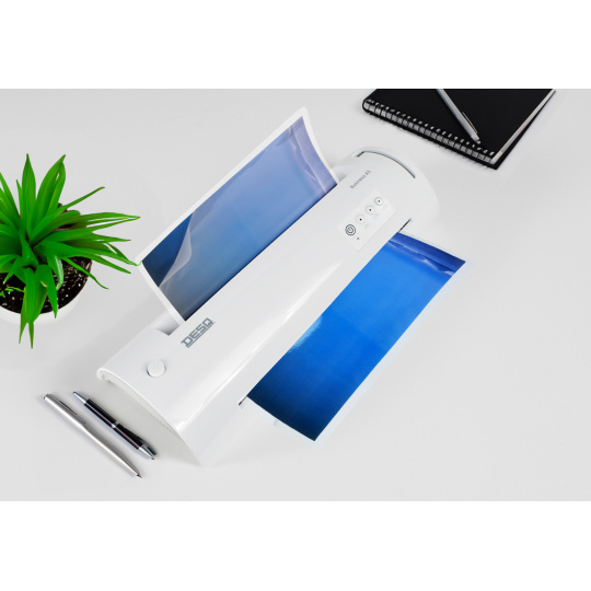 Profesionálny A3 laminátor s patentovanou technológiou Jam Free, ktorá zabraňuje zaseknutiu fólie vo vnútri stroja. Ideálny pre kancelárie, školy a podnikanie. ? Pripravený na použitie za pouhých 30 sekúnd ? Jam Free technológia – zabraňuje zaseknutiu laminovacej fólie ? Vysoká laminovacia rýchlosť: 400 mm/min ? Variabilné nastavenie hrúbky fólie ? Laminuje dokumenty a fotografie v kapsách 75/125 mikrónov ? Uvoľňovacia páčka – umožňuje ľahké vybratie alebo zarovnanie dokumentov ? Automatické vypnutie po 30 minútach – úspora energie ? Jednoduché vkladanie fólií zozadu – plynulé zavedenie a presné zarovnanie dokumentov Perfektne na laminovanie: ?? Prezentácií a reklamných materiálov ?? Navigačných a výstražných tabúľ ?? Fotografií a certifikátov ?? Kreatívnych a kancelárskych dokumentov Rýchle a bezproblémové laminovanie. Všetky laminátory DESQ sú ľahko ovládateľné, pripravené okamžite a vždy zabezpečujú dokonalý výsledok.