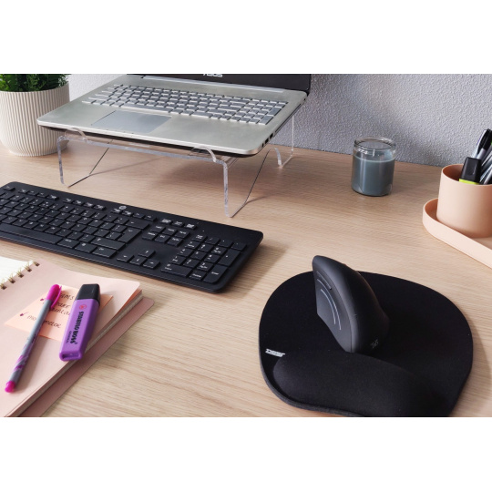 Ergonomická podložka pod myš s opierkou zápästia udržiava zápästie v správnej polohe počas práce s myšou. ? Prostorný dizajn – minimalizuje napätie v ruke a uľahčuje plynulejší pohyb myši ? Protisklzová spodná strana – zabezpečuje stabilné umiestnenie podložky na stole ? Ergonomická opierka zápästia – poskytuje stály oporu a znižuje nepohodlie pri dlhodobom používaní Podpera zápästia s pamäťovou penou sa prirodzene prispôsobí vášmu zápästiu, čím zabezpečuje maximálne pohodlie. Zvýšená opierka podporuje zdravé ergonomické vyrovnanie a znižuje zaťaženie zápästia pri dlhodobom používaní myši.
