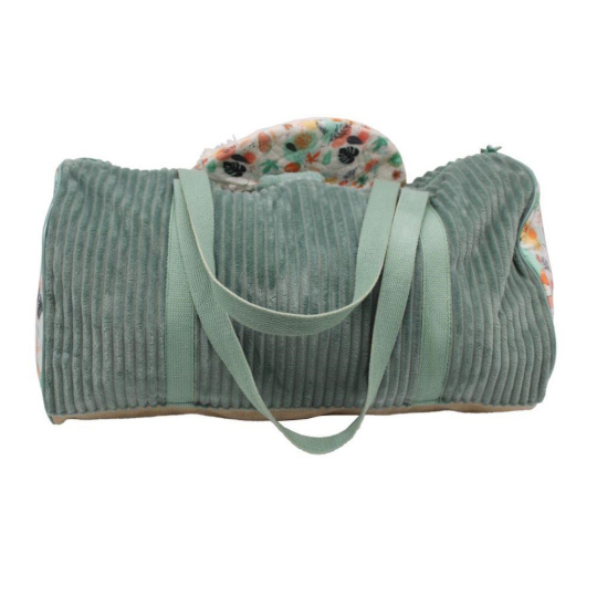 Originálna cestovná taška nemusí byť iba detskou cestovnou taškou, svoje využitie nájde ako športová taška aj ako roztomilá prebaľovacia taška. Textilná taška z príjemného manšestru, v neutrálnom zelenej farbe s lenochodom, pojme všetko, čo vaše dievčatko alebo chlapec na víkend u starkej, na výlet alebo na dovolenku potrebuje. Prezrite si hebkú tašku na hračky, oblečenie, športové aj prebaľovacie potreby.