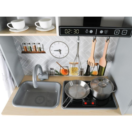 .Dětská dřevěná kuchyňka s rozšířeným příslušenstvím + textilní set ZDARMA - moderní design
