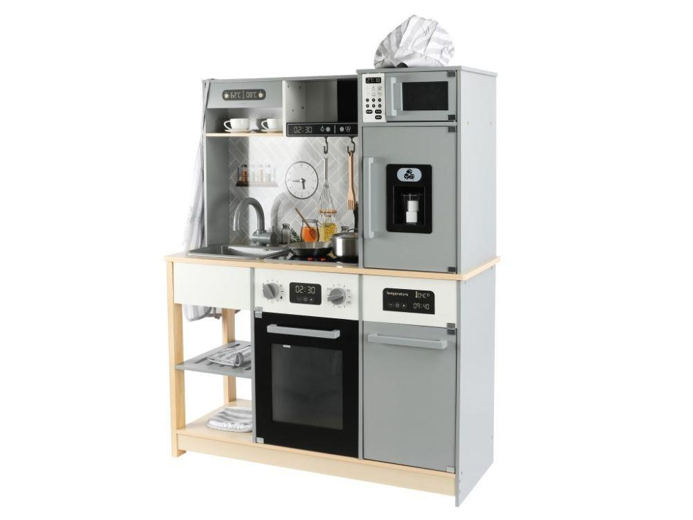 Detská kuchynka vybavená modernými spotrebičmi, doplnená o bohaté príslušenstvo a textilný kuchársky set ZDARMA, očarí dievčatá aj chlapcov. Drevená kuchynka v škandinávskom štýle je vhodná do každej miestnosti. Vďaka tejto krásnej edukačnej hračke si deti vyskúšajú varenie, pečenie, chystanie jedál, umývanie riadu a ďalšie činnosti bezpečným detským spôsobom. Pri hre v modernej kuchynke deti zdokonalia svoje zručnosti a zároveň si užijú veľa zábavy.