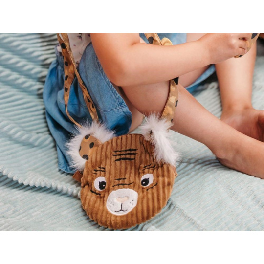 Detská kabelka v podobe roztomilého tigra je malým zavazadlom, do ktorého si deti uloží všetko potrebné na pobyt vonku, na výlet aj na dovolenku. Kabelka pre deti má nastaviteľný ramenný popruh a zapínanie na zips.