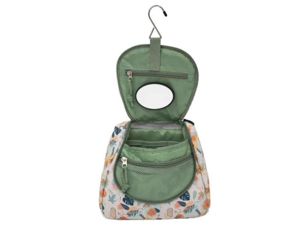 Kosmetická taška na zavešenie, v neutrálnej zelenej farbe, s roztomilým lenochodom, je originálnou detskou toaletnou taškou na cesty. Veľmi pevná a odolná kozmetická taška, so veľkým množstvom vreciek a odnímateľným zrkadlom, pohodlne pojme hygienické potreby vašej dievčatka alebo chlapca. Vodoodpudivý materiál umožní deťom používať tašku v kúpeľni aj vo vani. Vďaka háčiku ju jednoducho zavesíte na háčik alebo vodovodnú batériu a deti majú svoje toaletné potreby pohodlne po ruke.