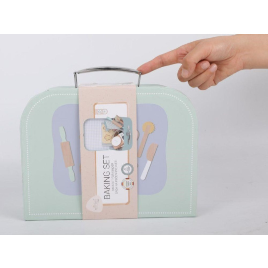 Detská sada na pečenie uložená v praktickom kufríku umožní deťom piecť perníčky a sušienky kdekoľvek sa im zachce - v kuchyni, v detskej izbe, detskej kuchynke, v záhradnom domčeku a pokojne aj na návšteve u kamaráta alebo babičky, bezpečným detským spôsobom. Obsahuje všetko potrebné na upečenie lahodnej svačinky, kuchynskú váhu, nádobie, náčinie, cesto aj rukavicu. Kufrík umožní deťom celú sadu rýchlo upratať aj preniesť.