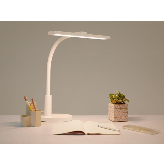 Kvalitná výroba - veľká stolná lampa je vyrobená z kvalitného hliníka. Univerzálne - lampa je svojím dizajnom vhodná nielen do detskej izby. Používať ju môžu deti aj dospelí, v detskej izbe aj v pracovni. Neutrálna farba je vhodná do každého interiéru. Nastaviteľná intenzita svetla - nastaviteľná do 3 úrovní. Nastaviteľná teplota svetla - nastaviteľná do 3 úrovní 3100, 4300 alebo 6300K. Ohebné rameno - umožní natočiť zdroj svetla a tvarovať lampu podľa aktuálnych potrieb. Chráni oči - jemné, neoslňujúce a nastaviteľné svetlo chráni zrak. Znížené množstvo modrých svetelných bodov. Dlhá životnosť - vďaka použitým kvalitným materiálom bude lampa rásť s vaším dieťaťom. Skvele mu poslúži od 3 rokov až do 18 rokov. Nízka spotreba energie. Jemné rameno. Jednoduché ovládanie. Jednoduchá montáž. Technické parametre: Rozmery: 44,8 x 4 cm. Rozmery základne: 18 cm (priemer). Dĺžka kábla: 150 cm. Rozmery balenia: 50 x 20 x 9 cm. Hmotnosť: 1,3 kg. Materiál: hliník, ABS. Svetelný zdroj: 72 LED korálikov RG0. Maximálny výkon: 12 W (72 x 0,2W LED modul). Intenzita osvetlenia: 3 úrovne (nastaviteľná). Teplota chromatičnosti svetla: 3100/4300/6300K (nastaviteľná). CRI: Ra>95. Farba: biela. Certifikáty a normy: CE, RoHS. Odporúčaný vek: od 3 do cca 18 rokov. Upozornenie: Lampa je určená iba na vnútorné použitie. Lampu ničím nezakrývajte, nekládujte na ňu uteráky, oblečenie atď. Nestriekajte na lampu vodu. Svetelný zdroj nastavujte priamo pred seba alebo nahor, nepozerajte priamo do svetla. Svetelný zdroj nie je možné vymeniť, neotvárajte jeho kryt. Externý ohybný kábel alebo šnúra tejto lampy nie je možné vymeniť. Ak je kábel poškodený, musí byť zlikvidovaný.