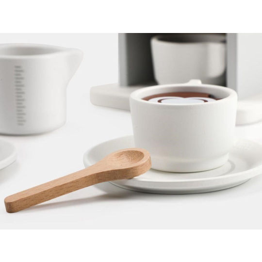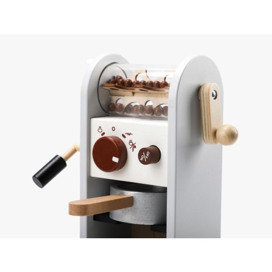 Detská kávovar na zrnkovú kávu s príslušenstvom je krásnou a zábavnou drevenou hračkou aj štýlovým doplnkom do detskej kuchynky. S originálnym príslušenstvom deti pripraví nielen kávu, ale aj zdobené cappuccino alebo kávu s našľahaným mliekom. Kávovar pre deti zdokonaluje motorické zručnosti, manuálnu zručnosť, podporuje kreativitu, umožňuje deťom hrať role.