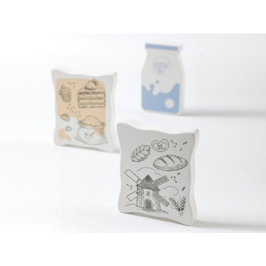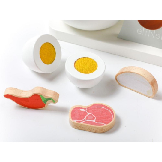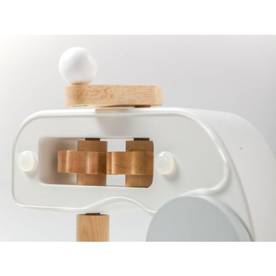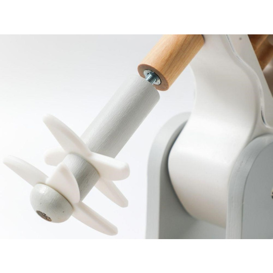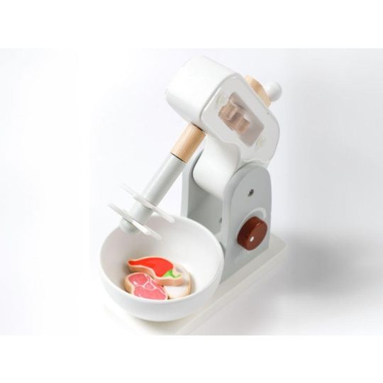 Drevený detský mixér v modernej farebnej kombinácii, v sete s dreveným príslušenstvom, je edukatívna hračka, ktorá umožní deťom vyskúšať si prácu s kuchynským robotom bezpečným detským spôsobom. Otáčanie páčky v hornej časti mixéra uvedie mixér do chodu a tým dodáva hračke reálny nádych. Detský mixér s miskou, drevenými ingredienciami a potravinami, krájecim vajíčkom a výmennými nadstavcami nesmie chýbať v žiadnej detskej kuchynke.
