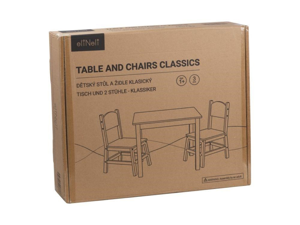 Detský stolík a 2 stoličky, v klasickom dizajne, je krásnym a praktickým setom detského nábytku do detskej izby, kuchyne, jedálne aj herného kútika. U stolíka si môžu deti maľovať a kresliť, tvoriť, prehliadať obľúbené knihy, hrať si alebo si dať olovrant. Detský stôl a stoličky v prírodnom (natur) prevedení je vhodný pre dievčatká aj chlapcov, do každého interiéru.