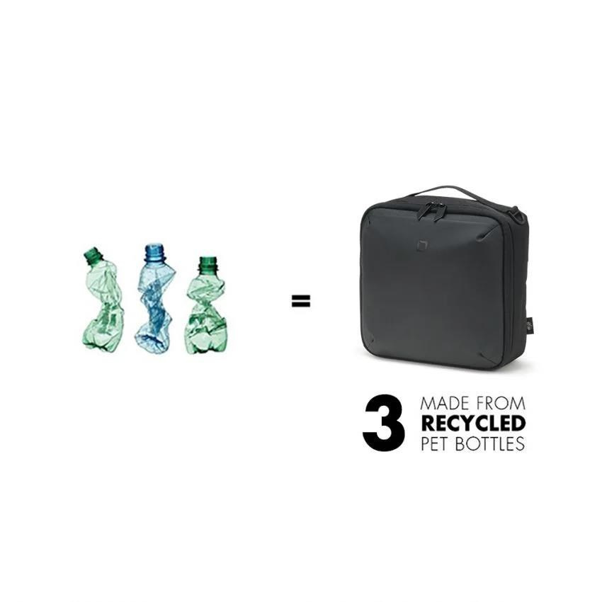 DICOTA is an official participant in the Microsoft Designed for Surface program, which certifies exceptional accessories created by third-party manufacturers to work seamlessly with Surface devices. Surface Duo, Passport, ticket, smartphone, charger, cables, power bank, adapter, headphones, keys and more. With the Accessories Pouch Eco MOVE you enjoy carefree travelling, knowing that all your belongings are perfectly organized and always within reach. The sophisticated interior with a variation of pockets, zipper compartments and flexible fixation straps provides storage space for everything you cannot miss during your journey. The RFID lined zipper compartment protects against unwanted scans, ensuring that your cards and personal information remain private and confidential. When travelling on a plane, use the key-holder as a hanger to attach the pouch to the seat in front of you and thereby safe space to comfortably rest your legs. Besides its great functionality, the pouch convinces as well in terms of design and durability thanks to an exciting combination of high-quality Polyester materials made from recycled PET. Made from 3 recycled PET bottles Compatible for Surface Duo and Surface Duo 2 Functional interior helps to keep travel and business essentials organized Main compartment with elastic straps to fix charging devices, power bank and cables Additional zippered compartment with RFID blocker and slip-in pocket for passport, smartphone and other mobile accessories Further zipper compartment on the front Webbing loop with key chain ring can be used as hanger Removable shoulder strap Also perfect for gaming device & related accessories More Information More Information Item number D31834-DFS Color black Volume in liters 0 Material 600D rPET Polyester Warranty Lifetime / 30 years EAN 7640186417716 Product Measurements (mm) 220 x 83 x 210 mm 8.66 x 3.27 x 8.27 inch Weight 0.27 kg / 0.59 lbs.