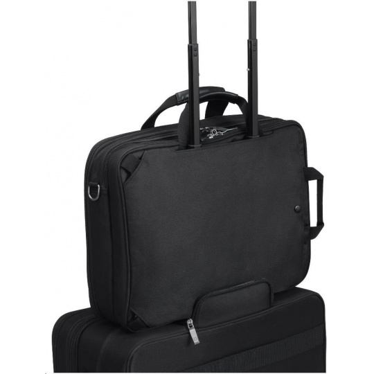 - Priestranná hlavná priehradka s úložným priestorom na dokumenty a polstrovaným zasúvacím vreckom na tablet do 10.5" (mäkký nylexový materiál)