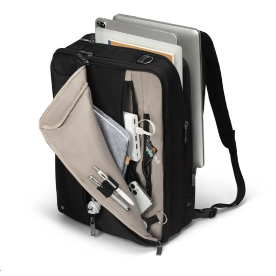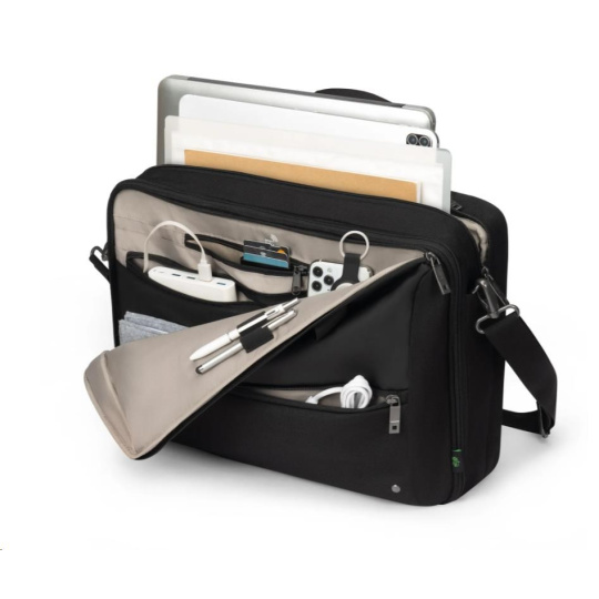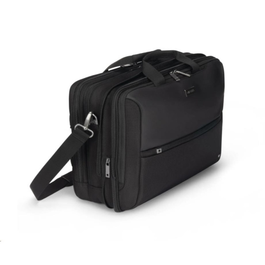 Flexibilita sa stretáva s bezpečnosťou v taške Top Traveller DUAL FIVE, konvertibilnej pracovnej taške, ktorá sa plynule premení z elegantnej aktovky na praktický batoh. Je vybavená ochranou DCT Notebook Protection a uzamykateľnou priehradkou, takže váš notebook zostane v bezpečí, zatiaľ čo skryté popruhy batohu umožňujú jednoduché prepínanie medzi rôznymi spôsobmi nosenia. Hlavná priehradka ponúka priestor pre tablety, dokumenty a mobilné vybavenie, zatiaľ čo predná časť obsahuje štruktúrované vrecká na príslušenstvo a samostatnú malú kapsu na káble a nevyhnutnosti. Navyše, s 35,5 % recyklovaných PET fľašami použitými pri výrobe, je to rozumná a ekologická voľba.