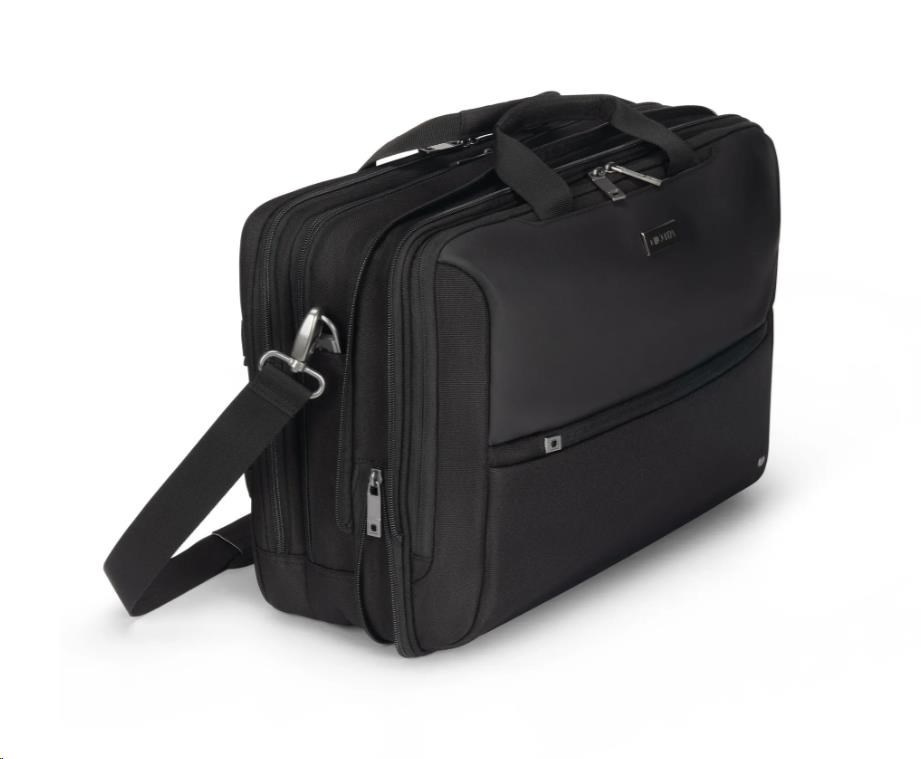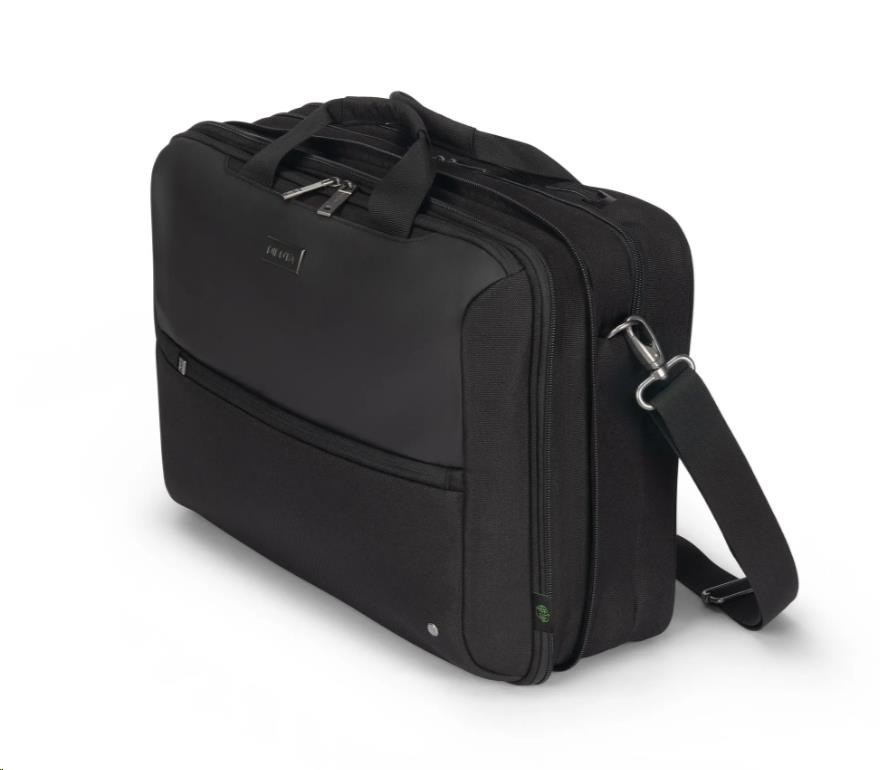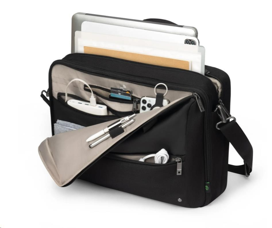 Flexibilita sa stretáva s bezpečnosťou v taške Top Traveller DUAL FIVE, konvertibilnej pracovnej taške, ktorá sa plynule premení z elegantnej aktovky na praktický batoh. Je vybavená ochranou DCT Notebook Protection a uzamykateľnou priehradkou, takže váš notebook zostane v bezpečí, zatiaľ čo skryté popruhy batohu umožňujú jednoduché prepínanie medzi rôznymi spôsobmi nosenia. Hlavná priehradka ponúka priestor pre tablety, dokumenty a mobilné vybavenie, zatiaľ čo predná časť obsahuje štruktúrované vrecká na príslušenstvo a samostatnú malú kapsu na káble a nevyhnutnosti. Navyše, s 35,5 % recyklovaných PET fľašami použitými pri výrobe, je to rozumná a ekologická voľba.