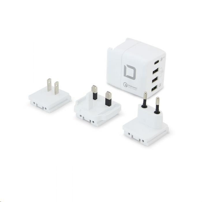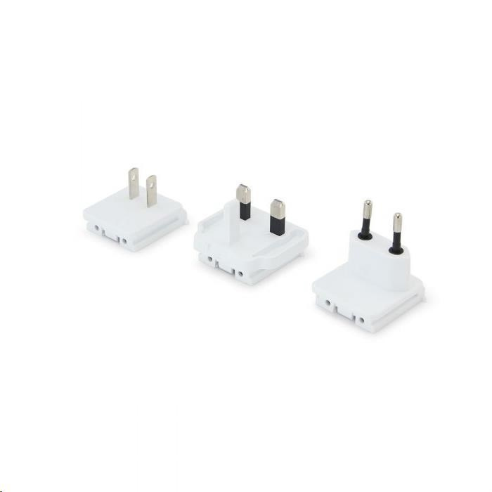 - 3 vymeniteľné cestovné zástrčky pokrývajú viac ako 200 krajín a