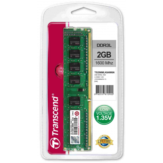 Pamäťové moduly Transcend sú vyrobené podľa prísnych špecifikácií z najlepších dostupných čipov a materiálov a prechádzajú náročným laboratórnym testovaním, aby sa zabezpečil najlepší možný výkon. Nízkonapäťové moduly DIMM Transcend DDR3 pracujú pri nominálnom napätí len 1.35 V, čo nielenže produkuje menej tepla, ale tiež znižuje elektrické zaťaženie pamäťového radiča a ponúka až 15 % úsporu energie v porovnaní so štandardným 1.5V.