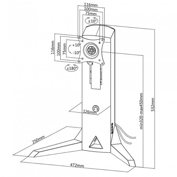 Stolový podstavec s držiakom monitora Tv Fiber Mounts FM110 Podstava na monitor Tv 17-32", VESA 75x75 a 100x100, nastavenie výšky 32-45cm, náklon +/- 10°, konektory USB, mikrofón a repro, nosnosť 8kg Chcete mať monitor umiestnený kdekoľvek na stole a nechcete do stola vŕtať dieru? Záleží Vám na dizajne a chceli by ste mať možnosť polohovať monitor? Tak práve pre Vás je ideálny držiak - podstavec na monitory Fiber Mounts FM110, ktorý vyniká kvalitou, krásnym dizajnom a možnosťou polohovania monitora. Výhodou sú aj 2 porty USB 3.0 a konektor pre slúchadlá a mikrofón. Stolový držiak podstavec na monitor alebo televízor, nádherné dizajnové spracovanie, polohovací, TOP kvalita - Fiber Mounts FM110 Kancelársky stolový držiak podstavec na monitory 17-32 palcov, polohovací, USB porty, TOP kvalita, nádherný dizajn - Fiber Mounts FM110 Technické údaje: nosnosť 8kg podpora VESA 75x75 a 100x100, možnosť rozšírenia na 200x100 alebo 200x200 ideálny na monitory aj televízory s uhlopriečkou 17" až 32" nastavenie výšky držiaka 320mm až 450mm nastaviteľný sklon obrazovky +10° až -10° funkcia PIVOT - rotácia monitora, možnosť otočiť obrazovku na šírku alebo na výšku korekcia roviny obrazovky otočenie do strán vestavené 2 porty USB 3.0 vestavený port na slúchadlá a mikrofón robustný, odolný, krásny dizajn vynikajúca kvalita farebné prevedenie čierne záruka 5 rokov Kvalitný a veľmi pekný podstavec na monitor alebo televízor Fiber Mounts FM110 má integrované porty 2x USB 3.0 a porty na slúchadlá a monitor Stolový držiak podstavec na monitory FM110 podporuje VESA štandardy: VESA 75x75 VESA 100x100 možnosť zakúpenia rozšírenia na VESA 200x100 a 100x200 možnosť zakúpenia rozšírenia na VESA 200x200